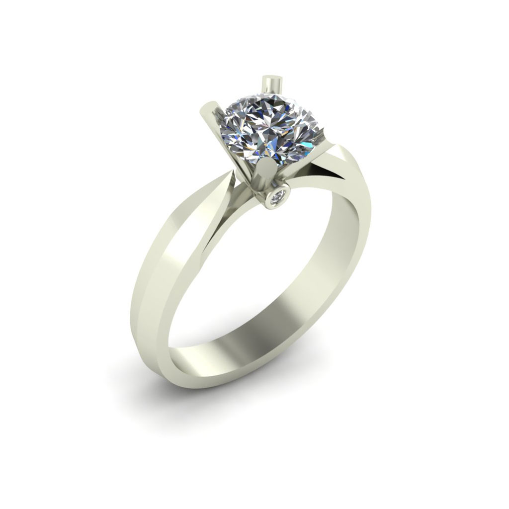 Above you will find an example of one of our computer generated renderings next to the finished ring. The blockier nature of the rendering compared to the finished product is due to the hand finishing that we do on each ring.