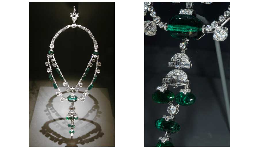 Our story is then faced with the obvious problem of explaining how the necklace, with emeralds mined in Colombia and cut in India, which then presumably made it back to Europe at some point, returned to India by the mid-20th century. It is thought that the maharaja purchased the necklace from one of the European auction houses (like Christie’s) and owned it until Harry Winston acquired it in 1948. Winston didn’t own it for long; he sold it to Cora Hubbard Williams in 1955. When she passed, she bequeathed the necklace to the Smithsonian Institution in 1972.
