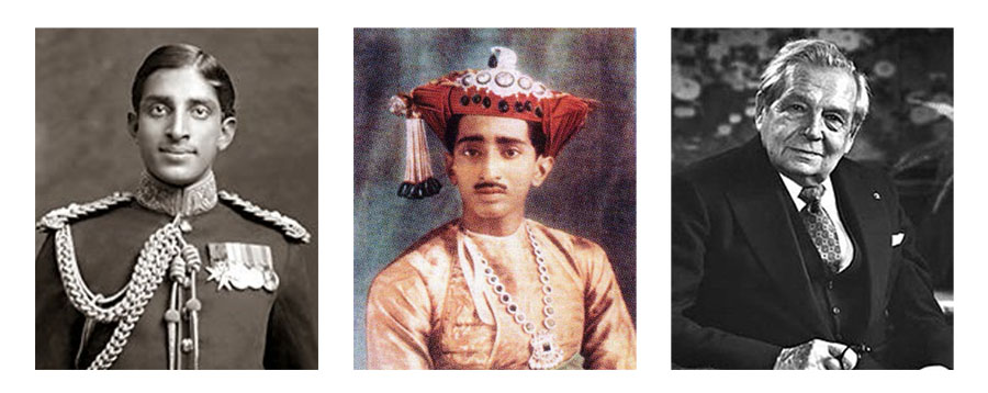 It is believed that Maharaja Tukojirao Holkar III (left) brought the stone back from India and bequethed it to his son, Maharaja Yashwantrao II (center), who eventually sold it to Harry Winston (right)