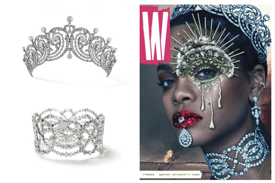 In September 2016, Rihanna graced to cover of W Magazine. In this cover, she was quite literally covered from head to shoulders in diamonds. I mean, they were just dripping off of her. Shine bright like a diamond, indeed. The tiara was made by Cartier for the Countess of Essex in the early 1900s (and it was worn by Clementine Churchill at Queen Elizabeth II’s coronation). While the tiara is quite beautiful, I am more taken with the choker. Also made by Cartier in the early 1900s, this stunner was made for Mary Scott Townsend. Cartier reacquired the necklace from a Sotheby’s auction in 1991. It is now on display in Australia, at the National Gallery of Australia.